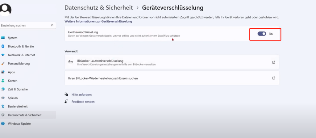 1.) Ist eine Geräteverschlüsselung unter Windows aktiviert?